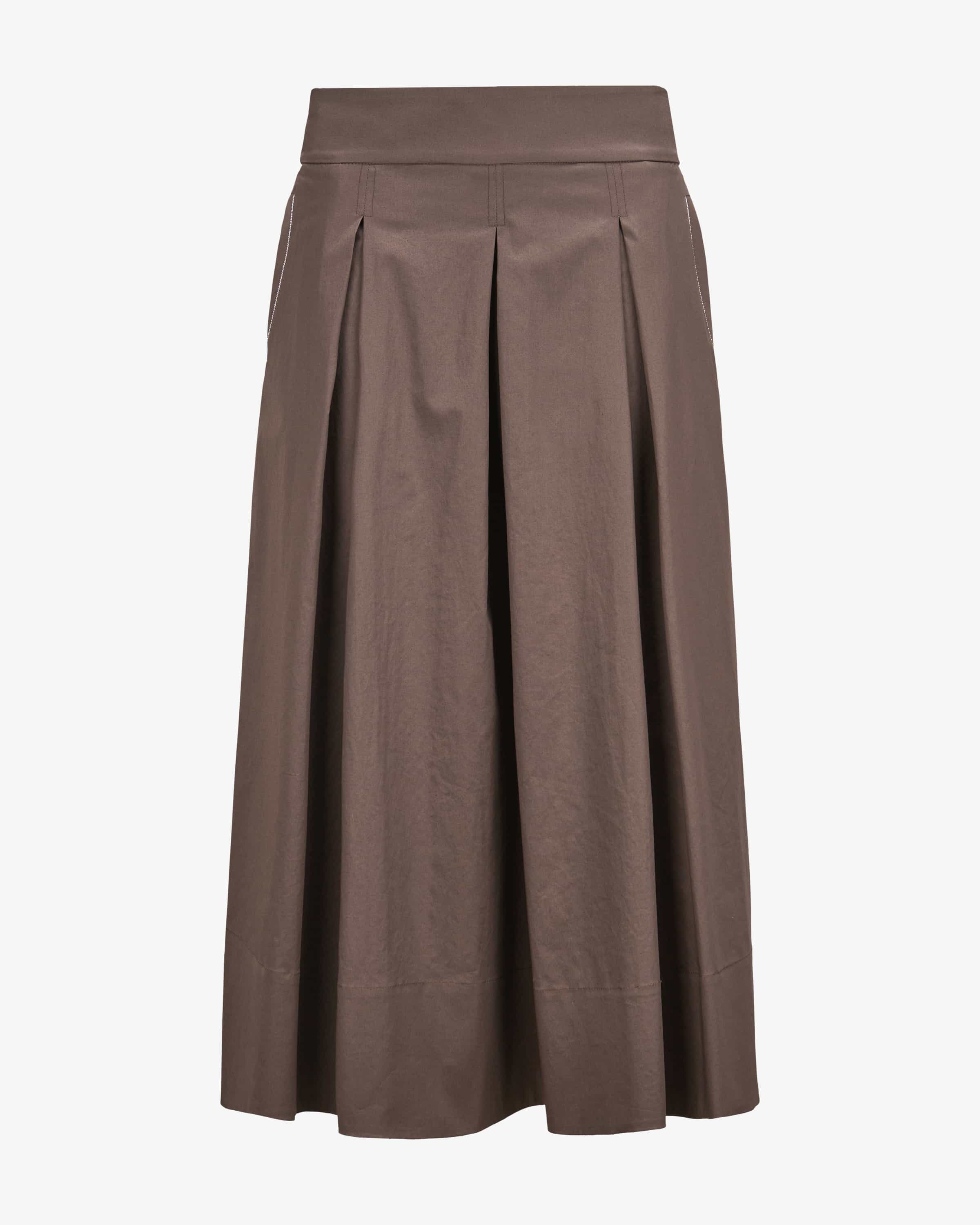 Skirt for women from Peserico in brown. The Italian brand stands for fine women's women's fashion with a focus on materials, fit and craftsmanship. This model also features a lightweight cotton blend and a partially elasticated waistband that guarantees comfortable to wear, while the fashionable box pleats and subtle chain appliqués discreet chain appliqués create a look with that certain something.