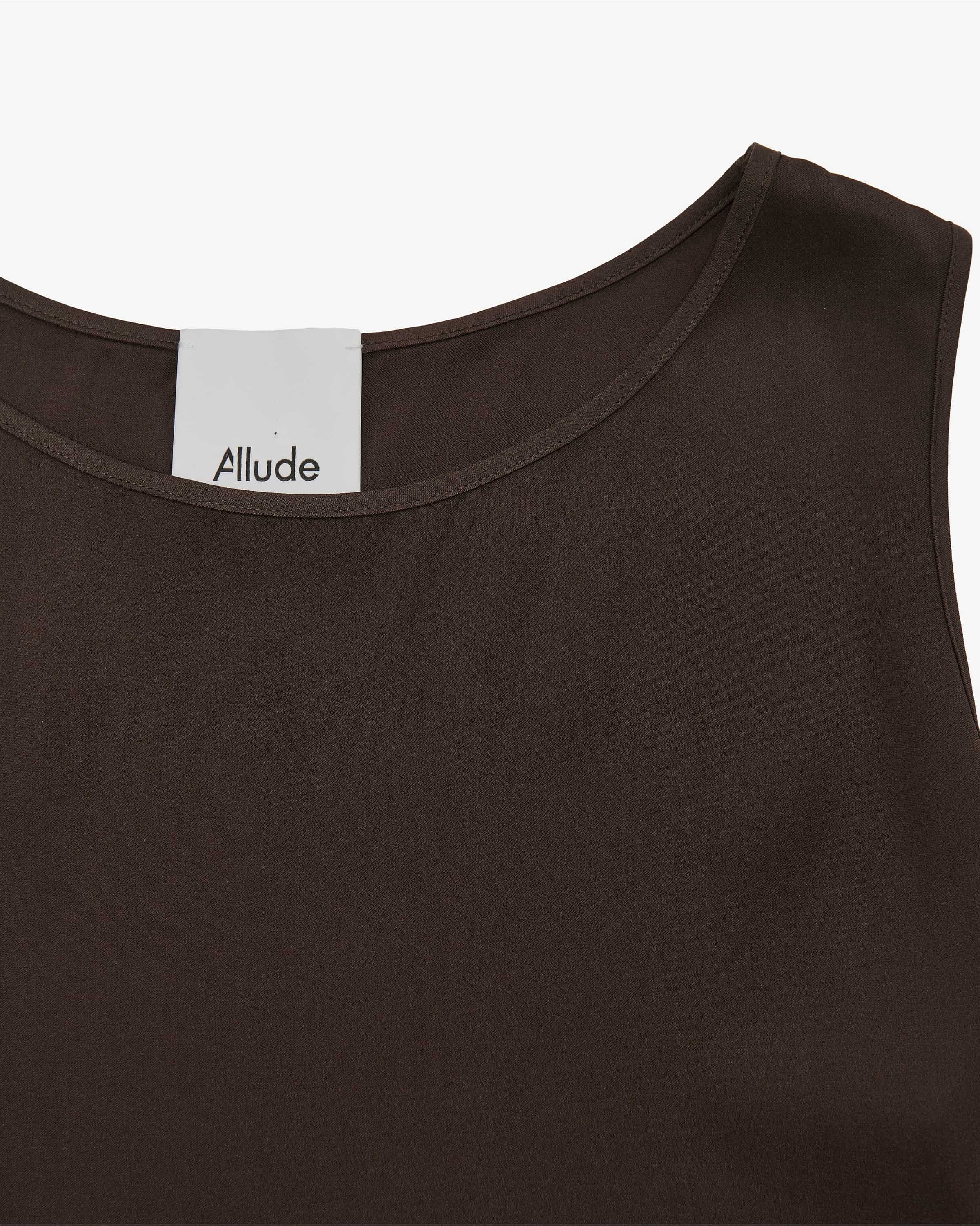 Silk top for women from Allude in Chocolate. Made in Munich - This style made from high-quality silk fabric is comfortable to wear, while the flowing feel creates a feminine flowing feel creates a feminine companion for versatile styles.