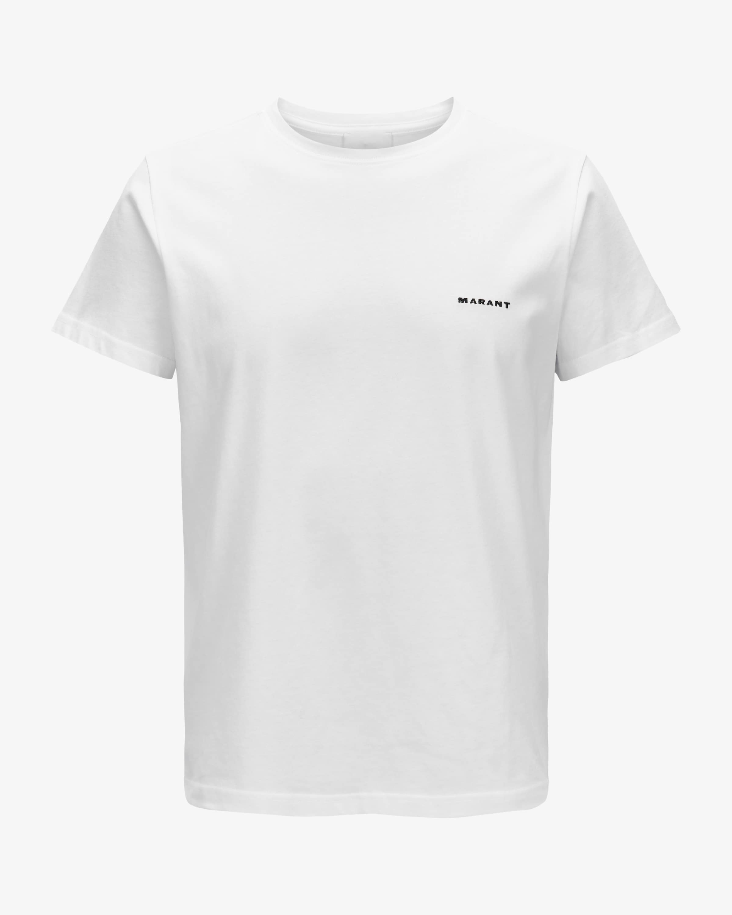 T-shirt for men from Isabel Marant in white. The label stands for casual Parisian elegance with a bohemian influence. This model in soft jersey fabric a fashionable basic thanks to its casual cut, which is accentuated by the contrasting underlined by the contrasting logo lettering typical of the label.