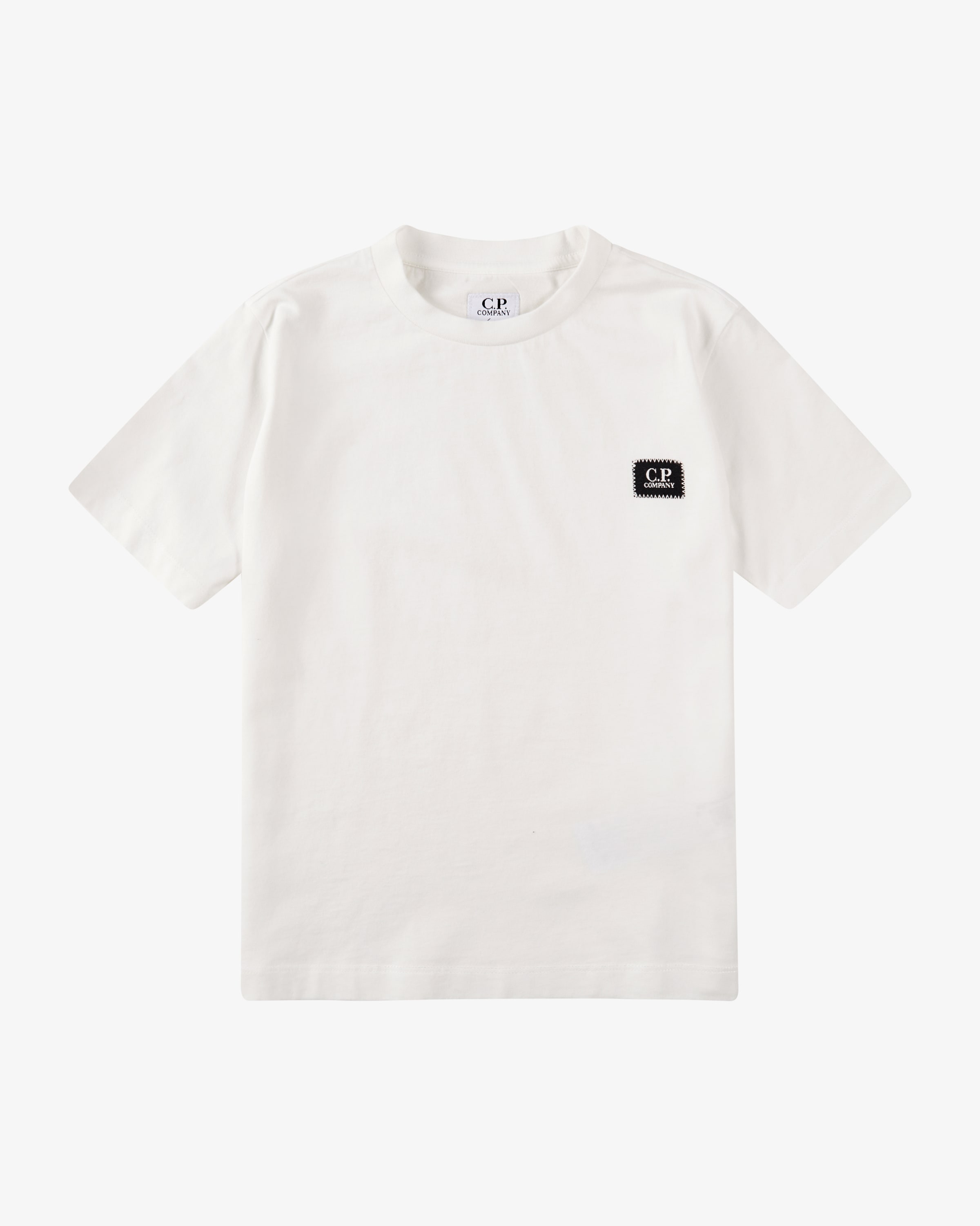 T-shirt for boys from C.P. Company in white and black. The model impresses as a casual style with logo lettering, while the comfortable cotton fabrication guarantees a high level of comfort.