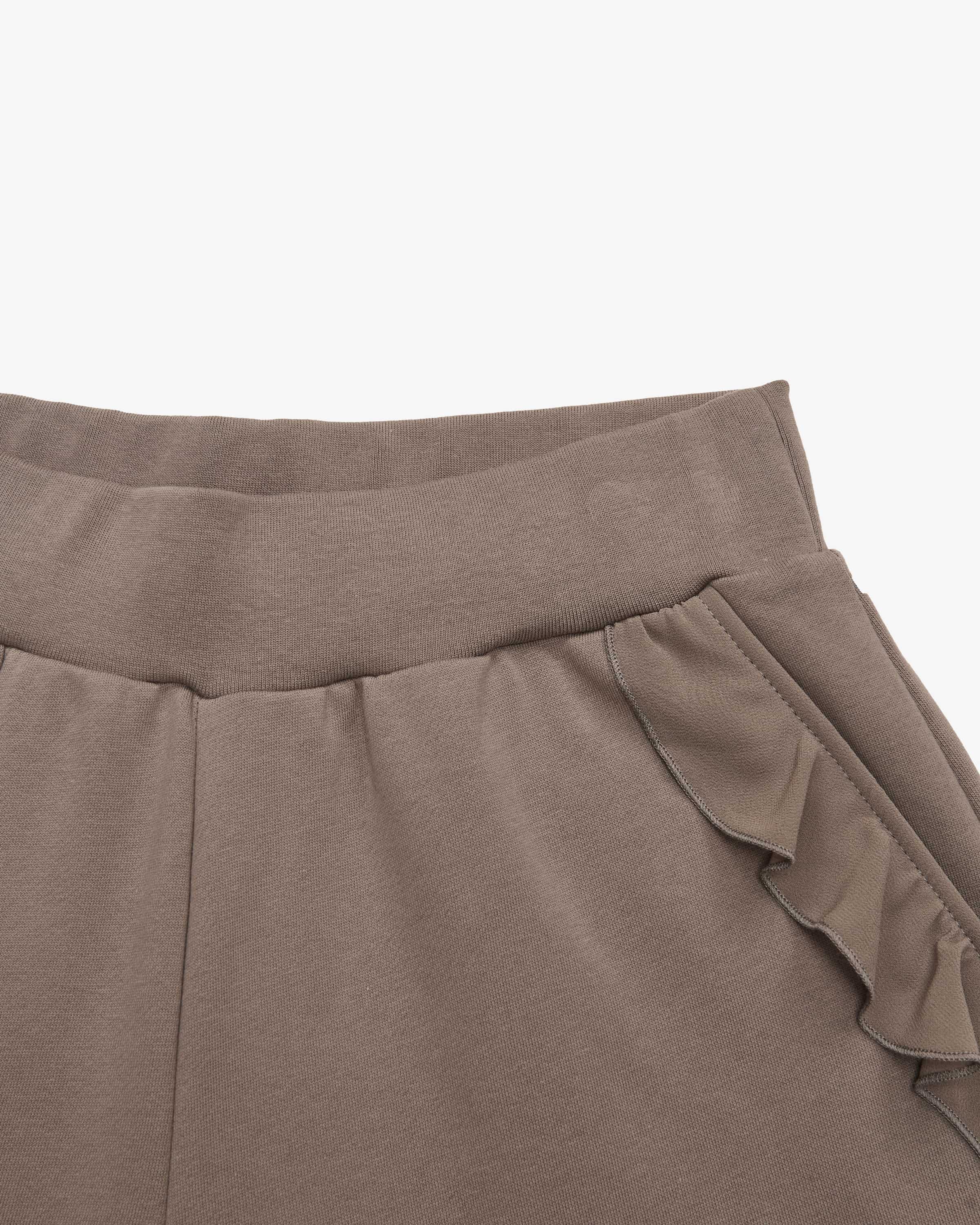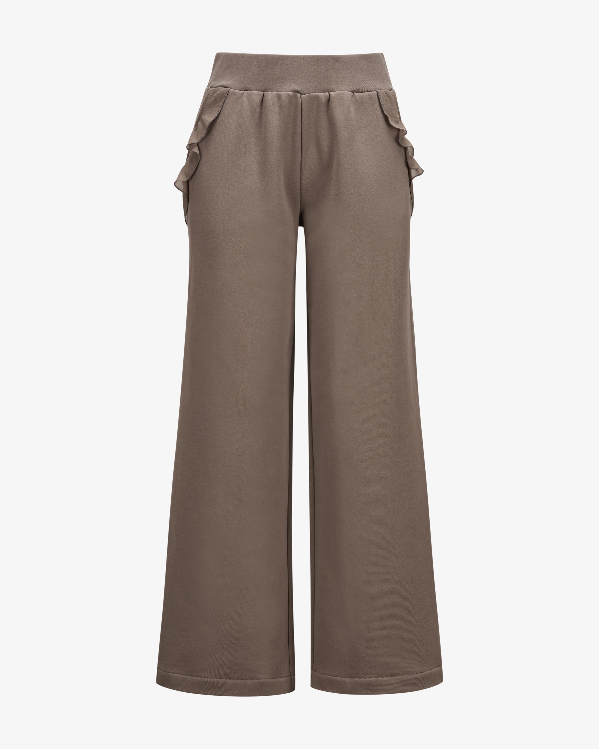 Val sweatpants for women from Love Joy Victory in taupe. A combination of design standards with a real sense of responsibility - the brand stands for sustainable activewear and casual fashion. Thanks to the wide fit with a straight leg and classic sweat fabric, this style is extremely comfortable to wear comfortable to wear, while semi-transparent ruffle details add a feminine touch. a feminine touch - a fashionable feel-good piece.