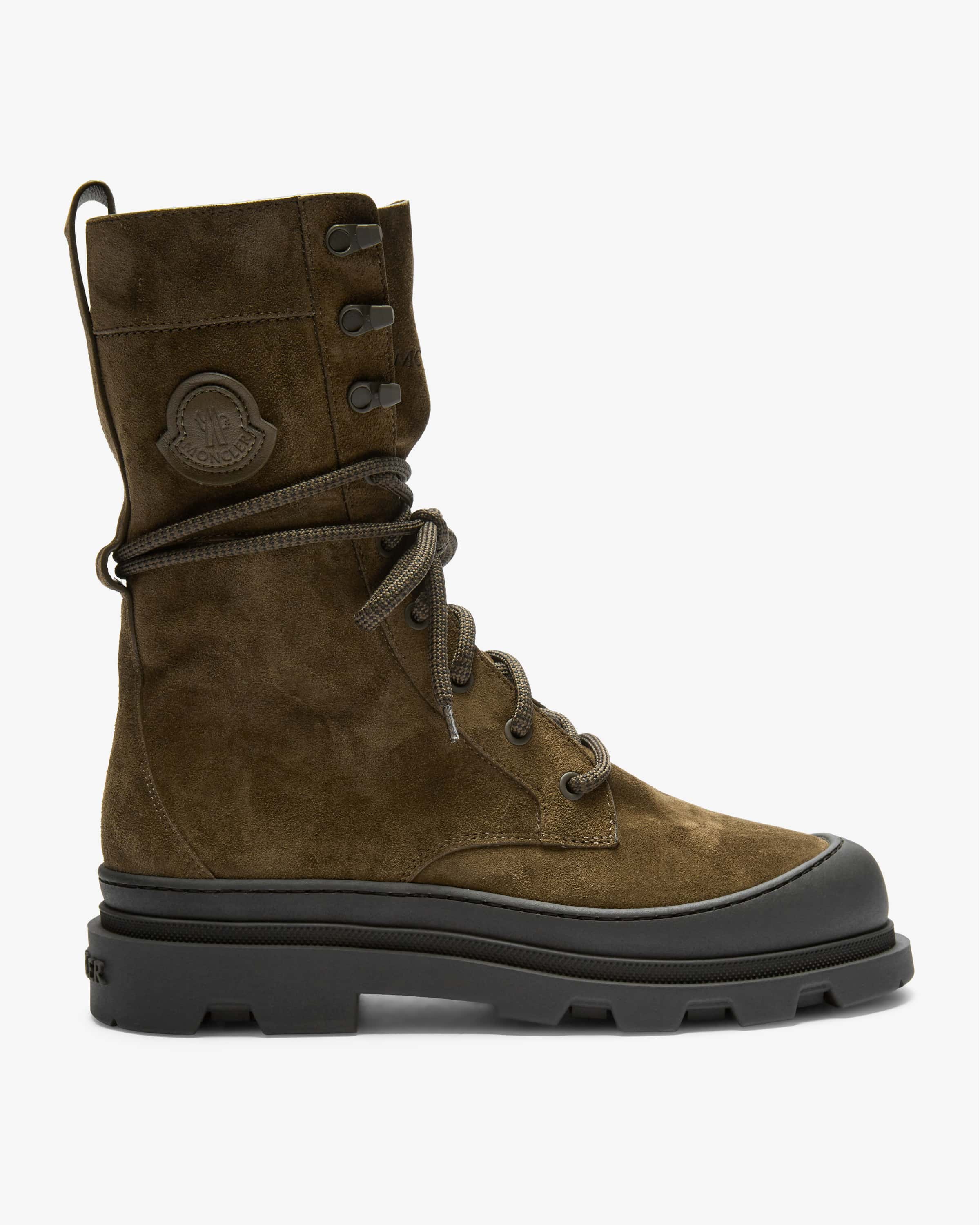 Vera High boots for women from Moncler in dark brown. The model impresses with by the processing of high-quality suede leather in combination with the eyelet lacing eyelet lacing in a sporty design, while the striking treaded sole skillfully underlines the the fashionable overall look and creates a must-have for your favorite outdoor activities. outdoor activities.