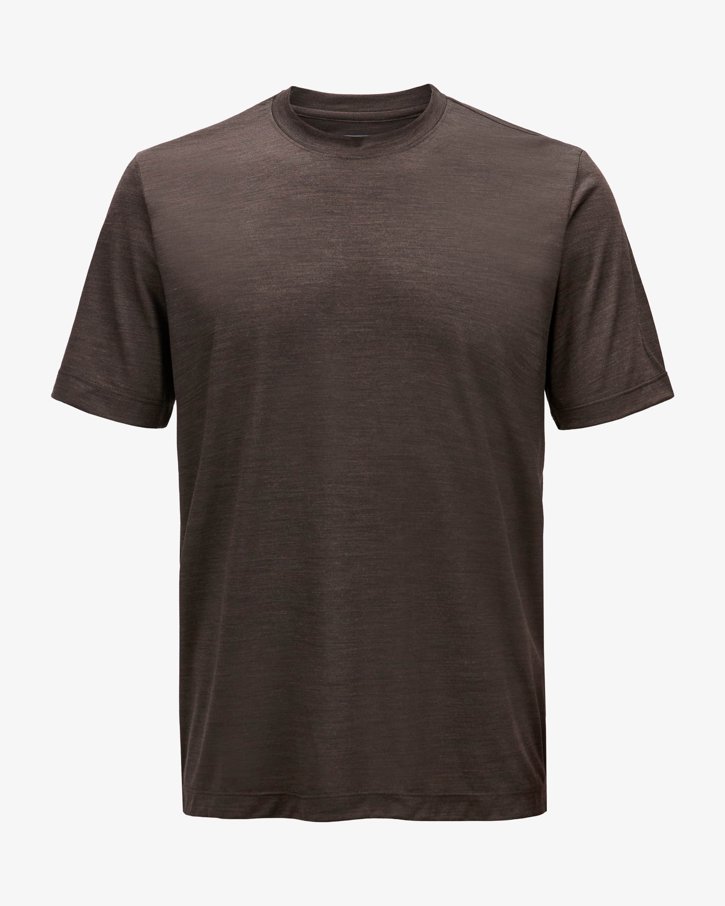 James T-shirt for men from Marco Pescarolo in Chocolate. The luxury sportswear model in a modern cut impresses with its light and at the same time high-quality virgin wool fabric in a smooth quality, while the combination of classic cut and classic cut and mottled design creates a modern casual companion. creates.