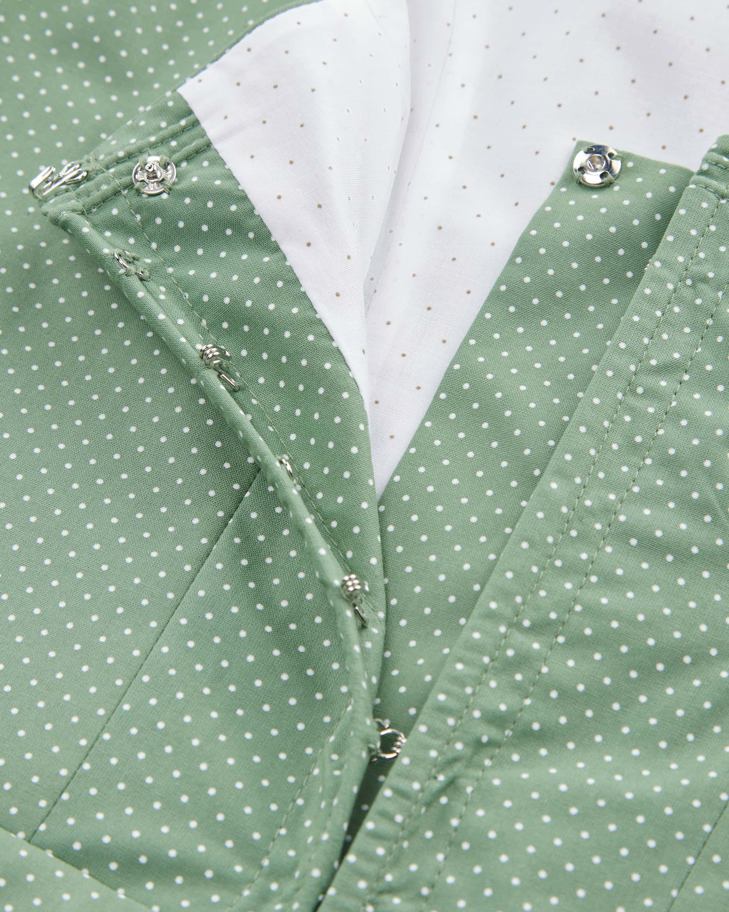 dot pattern and floral print, a traditional favorite with feminine charm is created.