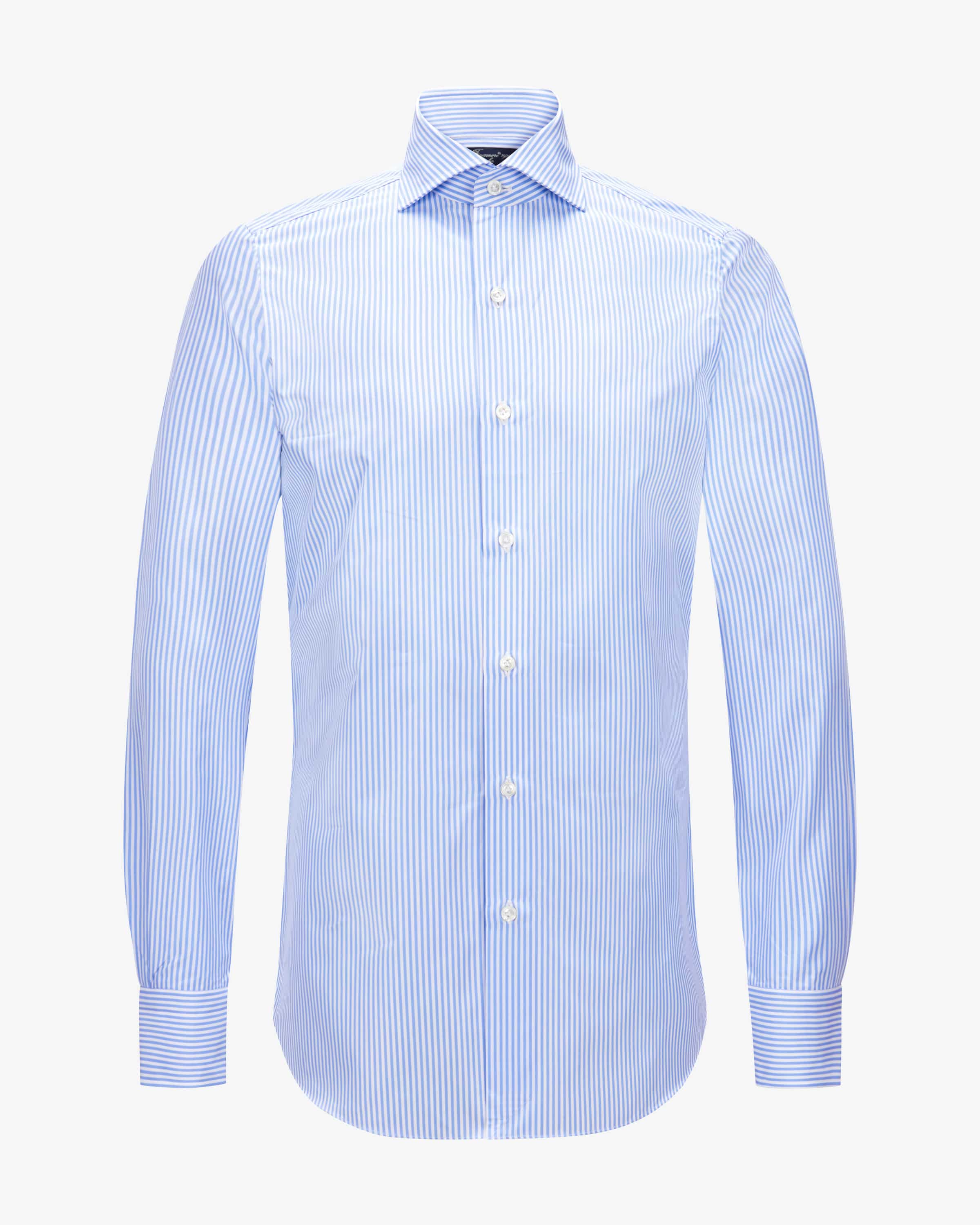 Napoli Eduardo Slim business shirt for men by Finamore 1925 in light blue and white. white. Neapolitan shirt manufacturer with over 100 years of tradition - hand-sewn & individual. With a tailored cut and classic details the shirt is a stylish partner for sophisticated business looks, while the striped design the striped design adds a special touch.