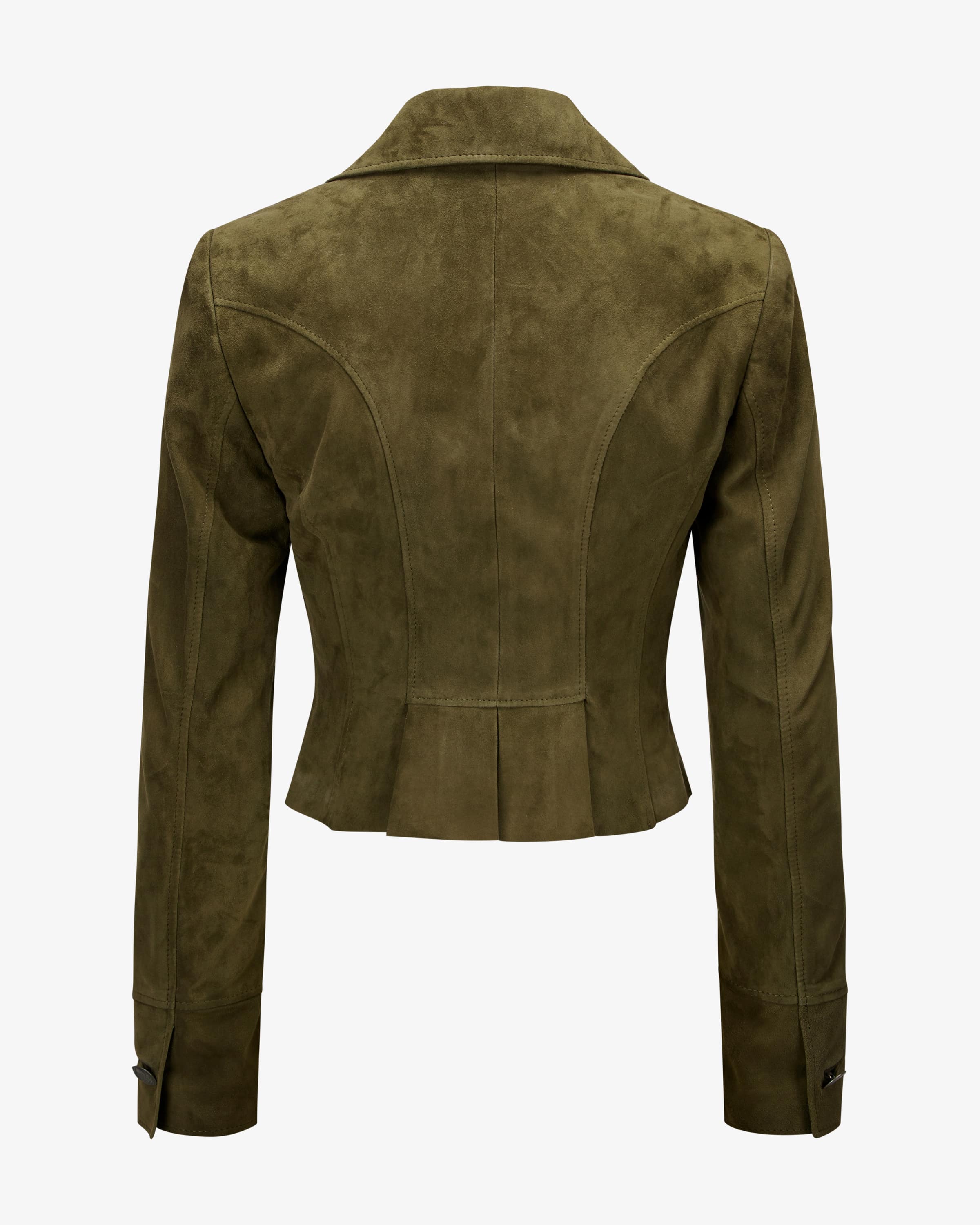 Linderhof Trachten-Lederjacke für Damen von Meindl in Dusty Green. Lederhandwerk aus Bayern - Bereits 1693 wurden bei Meindl die ersten Produkte aus Leder gefertigt und seit nun mehr als 70 Jahren fertigt das Traditionshaus hochwertige Lederwaren, die von Kennern meist ein Leben lang geschätzt werden. Während die Veloursleder-Qualität für eine hochwertige, weiche Haptik sorgt, erhält das taillierte Modell aus der exklusiven LODENFREY-Kollaboration dank der handgemachten Silberknöpfe zusammen mit dem Schößchen einen traditionellen Charakter mit femininem Charme.